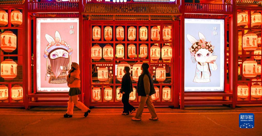 當日,河北省唐山市豐南區河頭老街張燈結彩,吸引市民前來逛街景、看演出、品美食,處處洋溢著濃濃的年味兒。