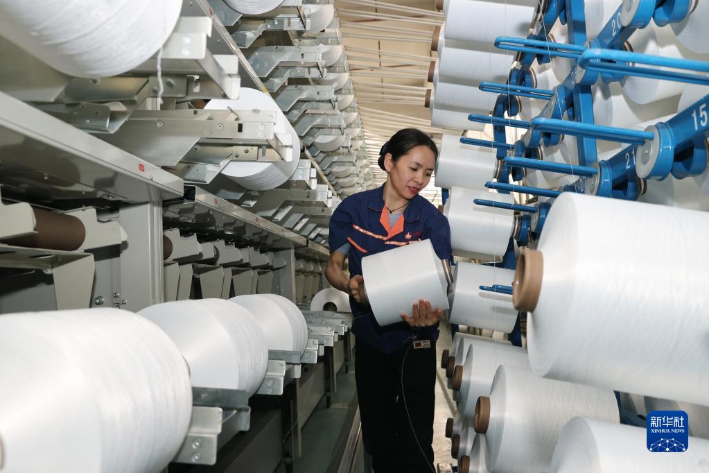 1月21日,工人在浙江省湖州市吳興區東林鎮一家化纖企業的車間作業。