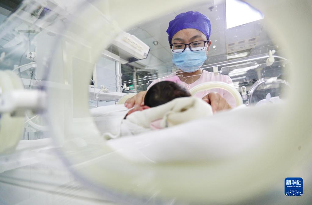 1月21日,河北省秦皇島市婦幼保健院新生兒科醫護人員在護理新生嬰兒。