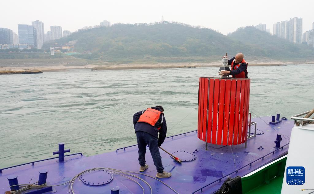 1月21日,長江重慶航道局寸灘航道基地兩名航道工在航標船上對航標設施進行維護。