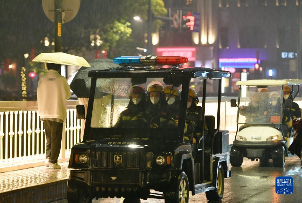 1月21日,福州市倉山區消防救援大隊消防員冒雨在福州解放大橋巡查。