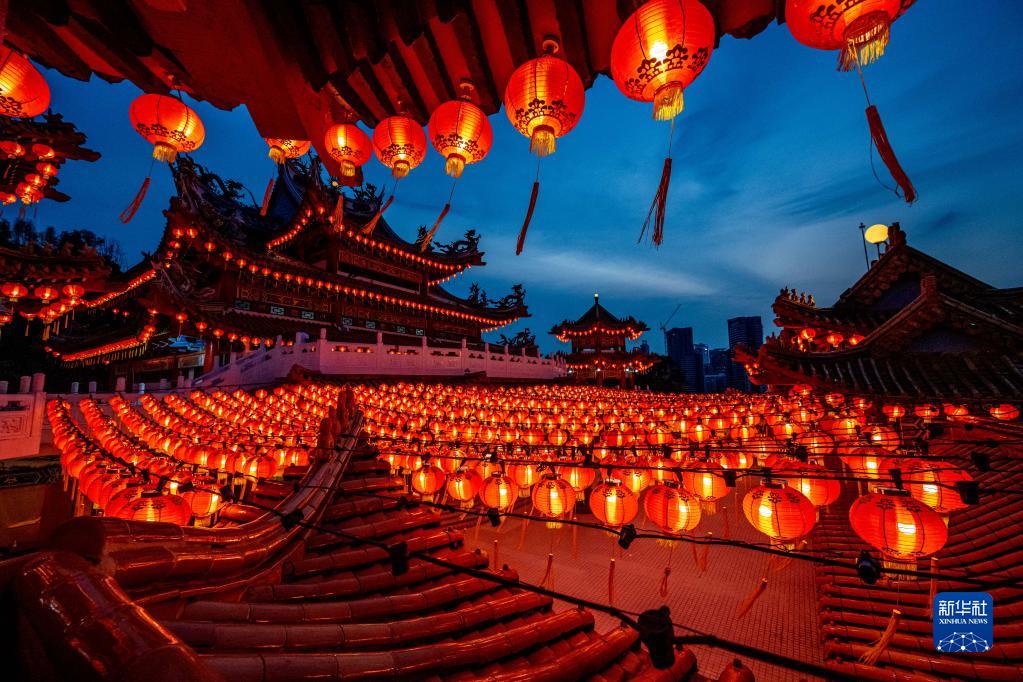 馬來西亞吉隆坡天后宮從13日開始每晚點亮6000只紅燈籠,迎接農歷癸卯兔年的到來。