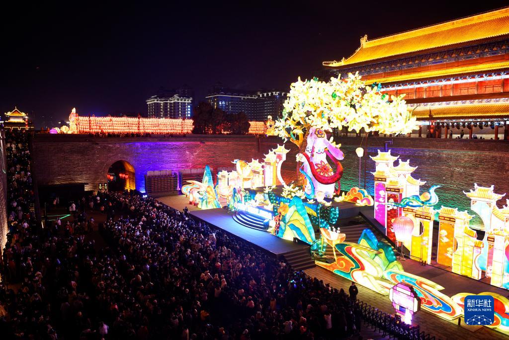 1月20日晚,西安城墻新春燈會現場人潮涌動,市民游客登上古城墻賞燈游玩,感受農歷新年氛圍。