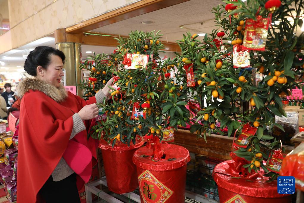 1月20日,一名女子在美國舊金山唐人街選購金桔。