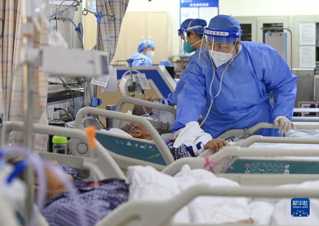 1月21日,北京大學第一醫院急診科副主任李曉晶在搶救室內為重癥患者查看病情。