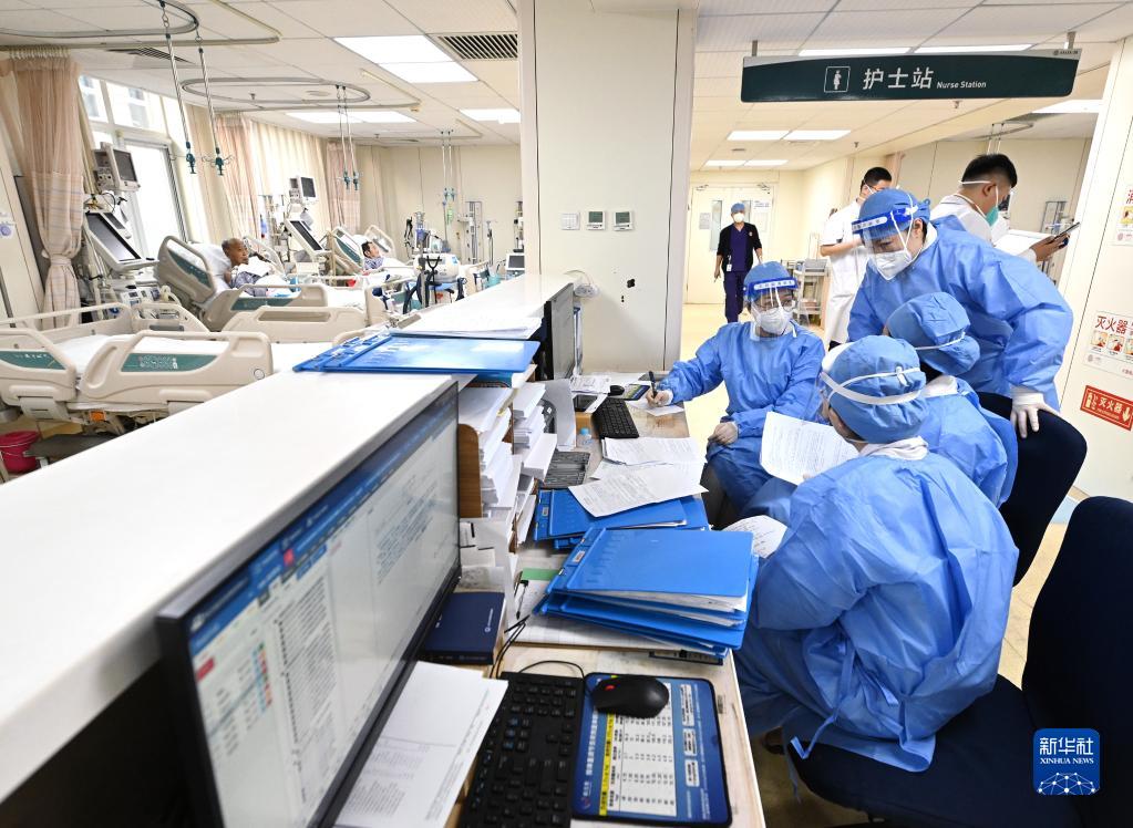 1月21日,北京大學第一醫院急診科重癥監護室內,醫生們在研判病人健康情況。
