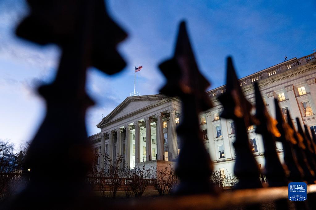 這是1月20日在美國首都華盛頓拍攝的財政部大樓。