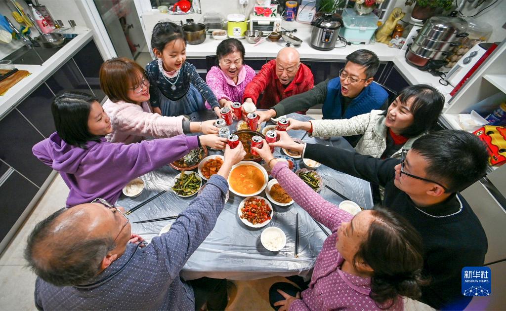 當日是除夕,全國各地的人們或與親朋好友一起、或是仍在堅守崗位,用各種方式享受歡聚之樂,一起吃一頓年夜飯,共慶新春到來。
