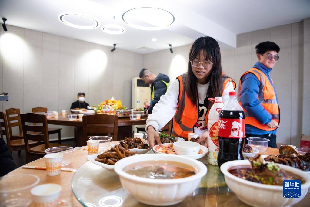 1月21日,在湖南長沙梅浦聯絡線一標段項目部,駐留工地的中鐵五局二公司工作人員準備聚餐迎接新春佳節。