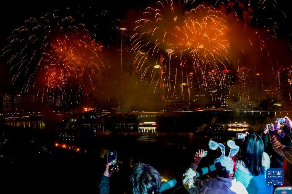 1月21日除夕夜,由重慶市市委、市政府組織開展的“新時代、新征程、新重慶”光影無人機焰火表演在重慶長江、嘉陵江兩江交匯處舉行。3000架無人機約20分鐘的跨年焰火表演,營造出歡樂祥和、辭舊迎新的濃厚氛圍,為市民和游客送上新春祝福。