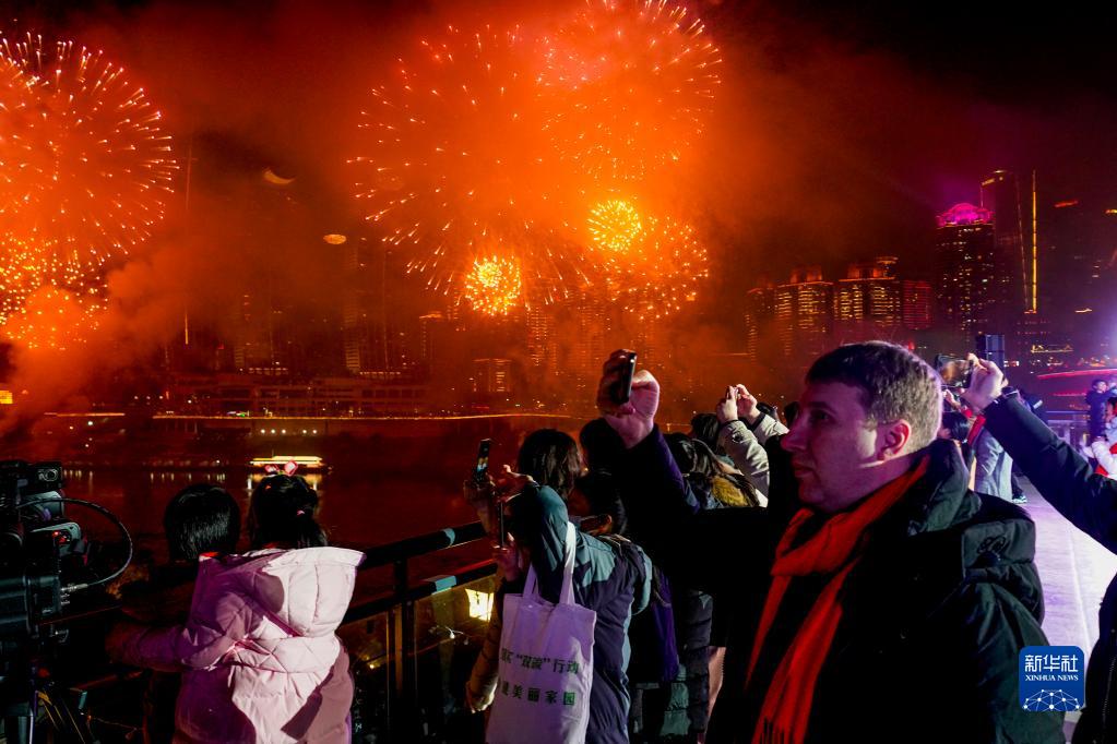1月21日除夕夜,由重慶市市委、市政府組織開展的“新時代、新征程、新重慶”光影無人機焰火表演在重慶長江、嘉陵江兩江交匯處舉行。3000架無人機約20分鐘的跨年焰火表演,營造出歡樂祥和、辭舊迎新的濃厚氛圍,為市民和游客送上新春祝福。