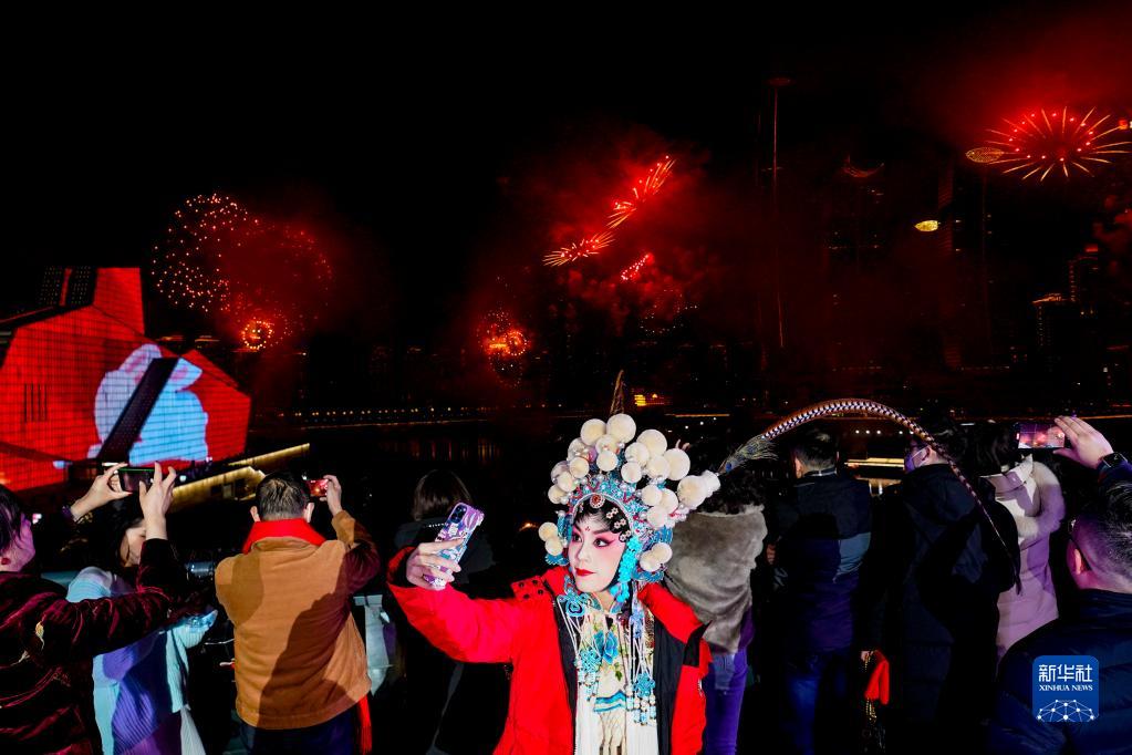 1月21日除夕夜,由重慶市市委、市政府組織開展的“新時代、新征程、新重慶”光影無人機焰火表演在重慶長江、嘉陵江兩江交匯處舉行。3000架無人機約20分鐘的跨年焰火表演,營造出歡樂祥和、辭舊迎新的濃厚氛圍,為市民和游客送上新春祝福。