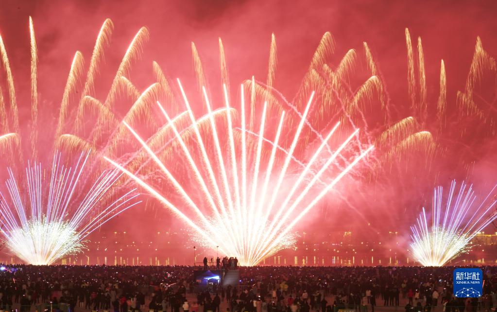 農歷除夕夜,陜西西安市民在觀看煙花表演中喜迎新年。
