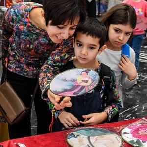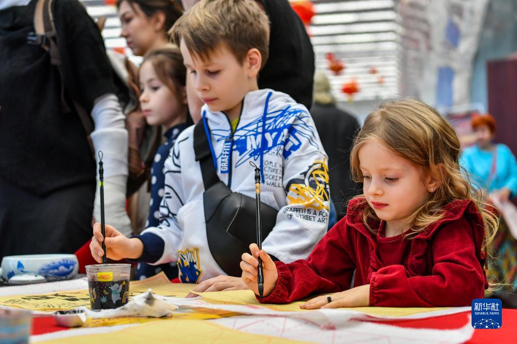 當天,迎新春中國文化體驗活動在莫斯科市政府宴會廳內舉辦,來賓在中國春節前夕集中體驗臨摹中國畫、中國書法、編中國結等中國傳統文化和民俗活動。