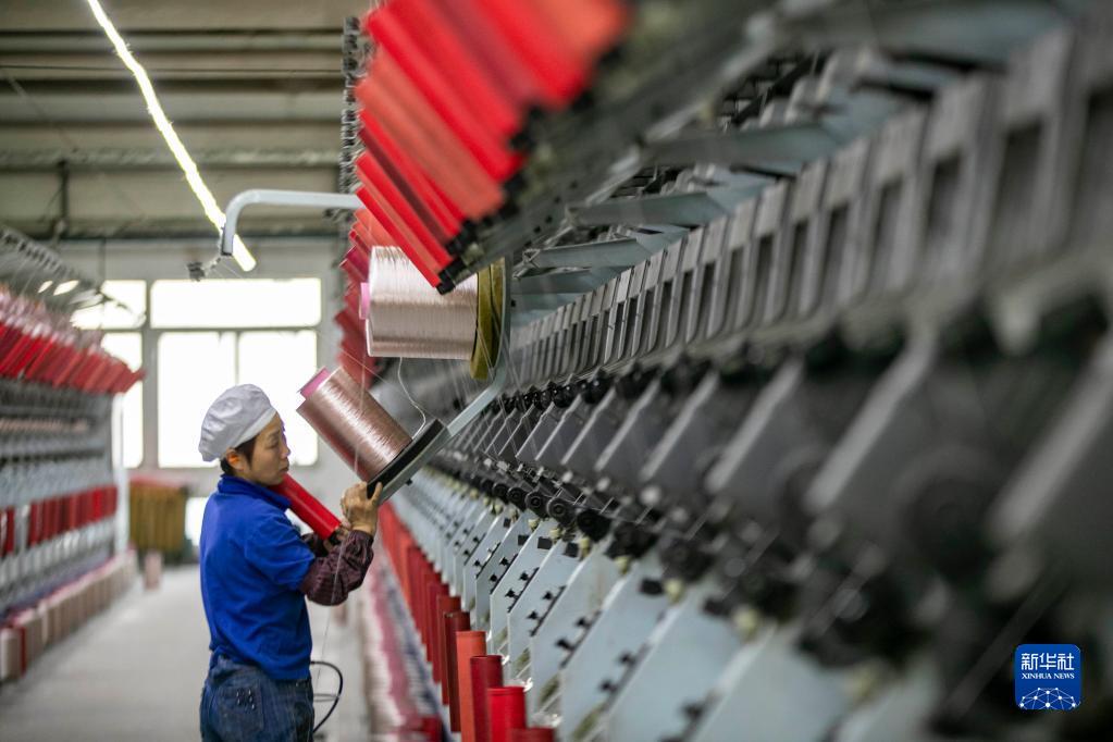 1月21日,在江蘇同欣化纖有限公司,紡織工人在生產一線作業。