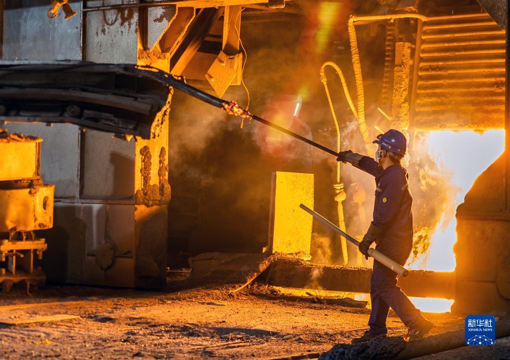 1月21日除夕,在安徽省馬鞍山市的中國寶武馬鋼股份特鋼公司生產線上,員工在進行測溫取樣。