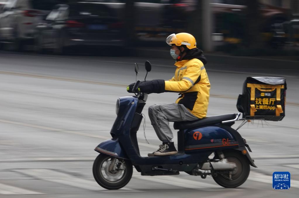 1月21日,在廣西南寧市高新區科德新苑路口,一名外賣小哥駕駛摩托為顧客送餐。