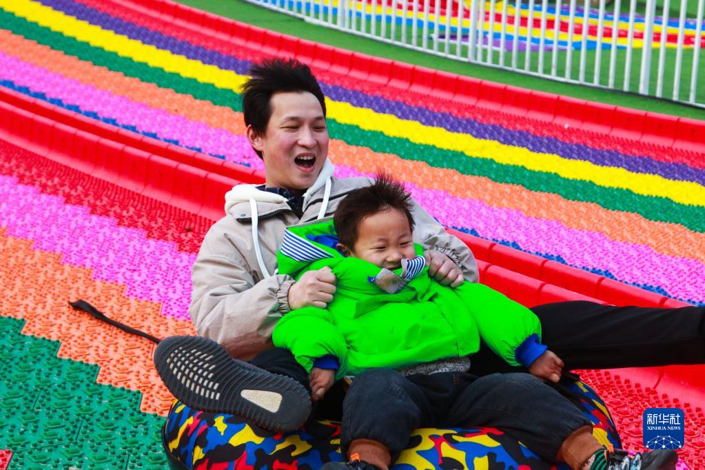 1月22日,人們在河南省信陽市光山縣一家游樂園游玩。