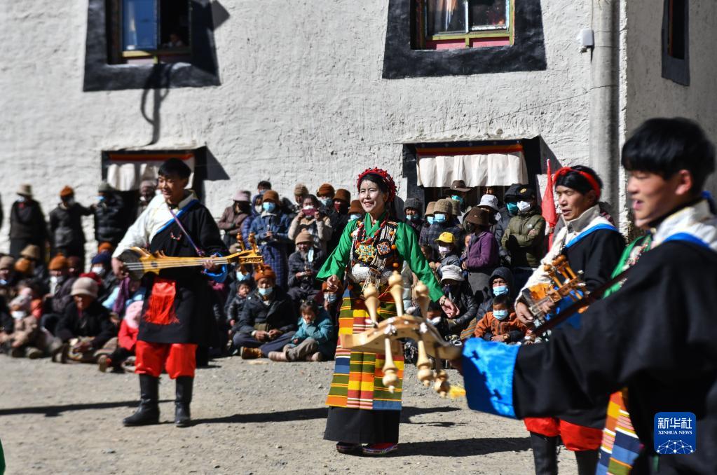 西藏日喀則市芒普鄉普村文藝演出隊在表演(1月21日攝)。