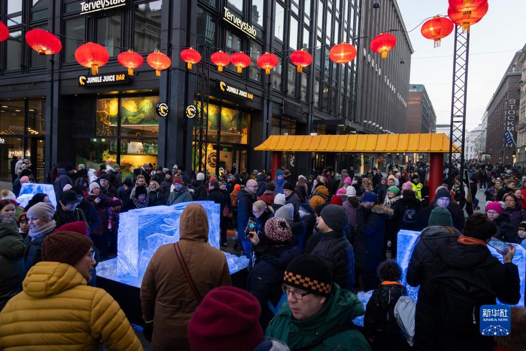 赫爾辛基的中國新年慶?;顒?1日在市中心舉行。串串火紅的燈籠將街道裝飾一新,以兔子為主題元素的冰雕展和舞獅等傳統民俗表演吸引了大批民眾。