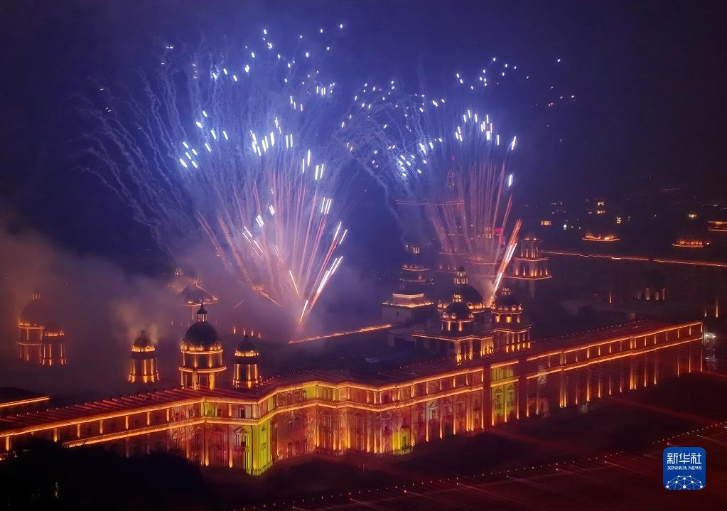 1月22日拍攝的“光影焰火歌舞嘉年華”活動現場(無人機照片)。