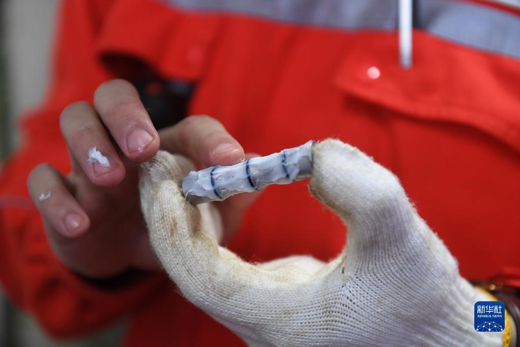 1月20日,一名石油工作者在檢修儀表時給零件抹潤滑膏。