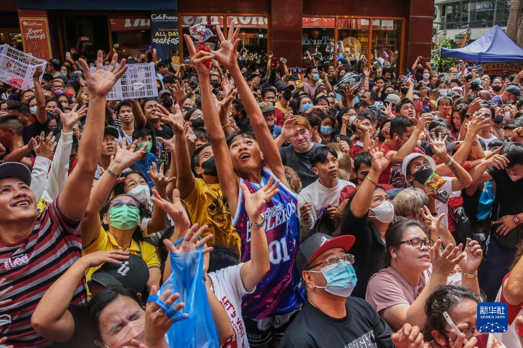 1月22日,人們在菲律賓馬尼拉中國城爭搶節日禮品。