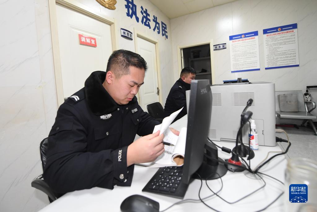 河北唐縣公安局中天警務站民警在除夕值夜班(1月21日攝)。