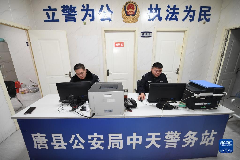 河北唐縣公安局中天警務站民警在除夕值夜班(1月21日攝)。