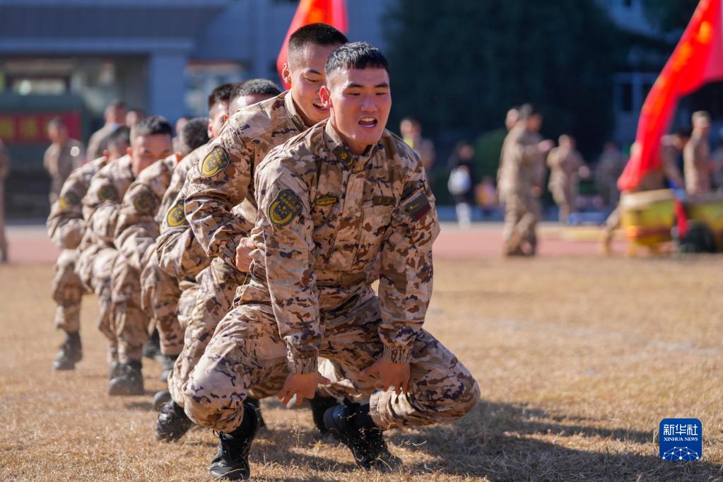 1月22日,武警第二機動總隊某支隊在營區開展新春游園活動,官兵們齊心協力進行“兔子跳跳”小游戲。