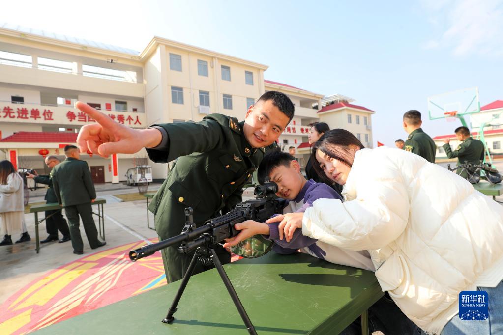 1月21日,第72集團軍某旅作戰支援營邀請來隊的官兵家屬開展軍事日活動。
