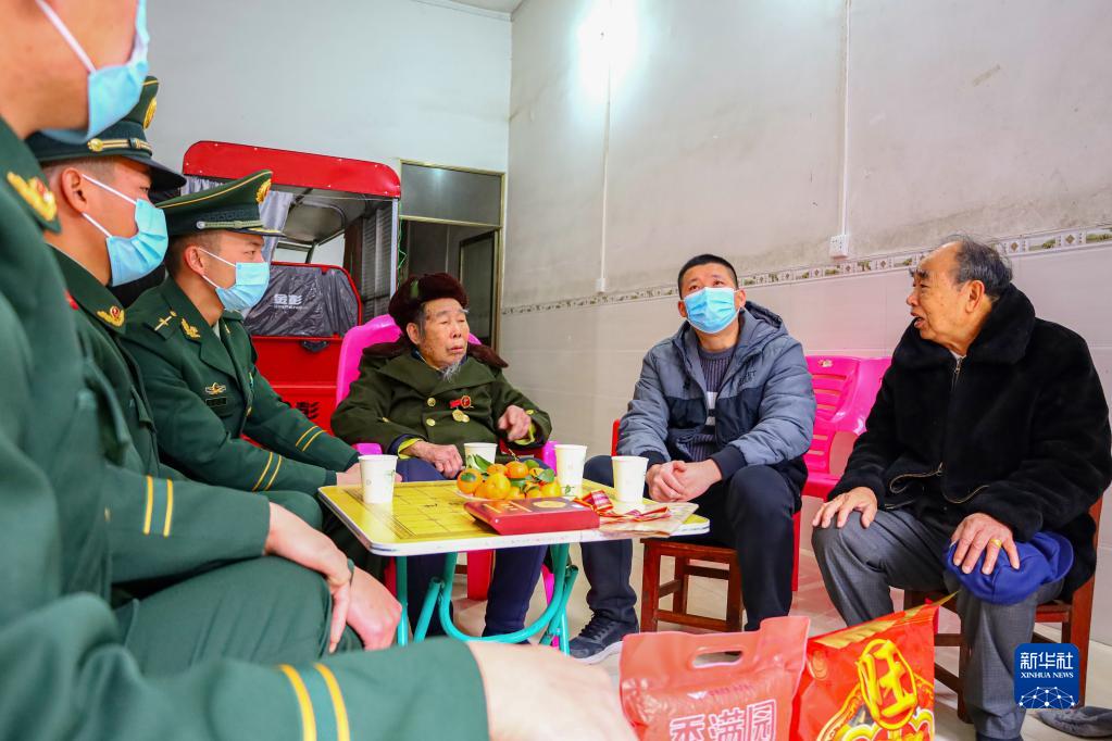 1月22日,武警廣西總隊南寧支隊馬山中隊官兵看望慰問抗美援朝老戰士石體正。