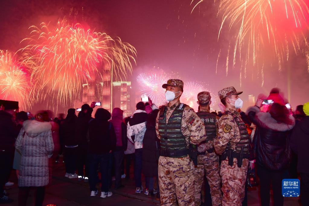 1月22日,武警重慶總隊官兵在重慶長嘉匯廣場執勤,守護人民群眾平安過節。