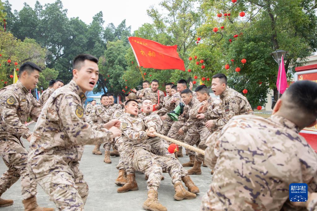 1月22日,武警廣西總隊北海支隊為豐富節日生活組織官兵開展拔河比賽。