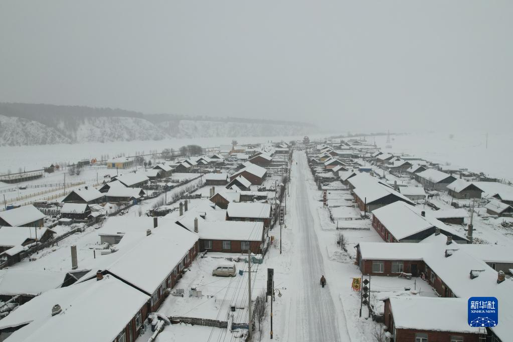 這是1月12日拍攝的黑龍江省漠河市北紅村村貌(無人機照片)。