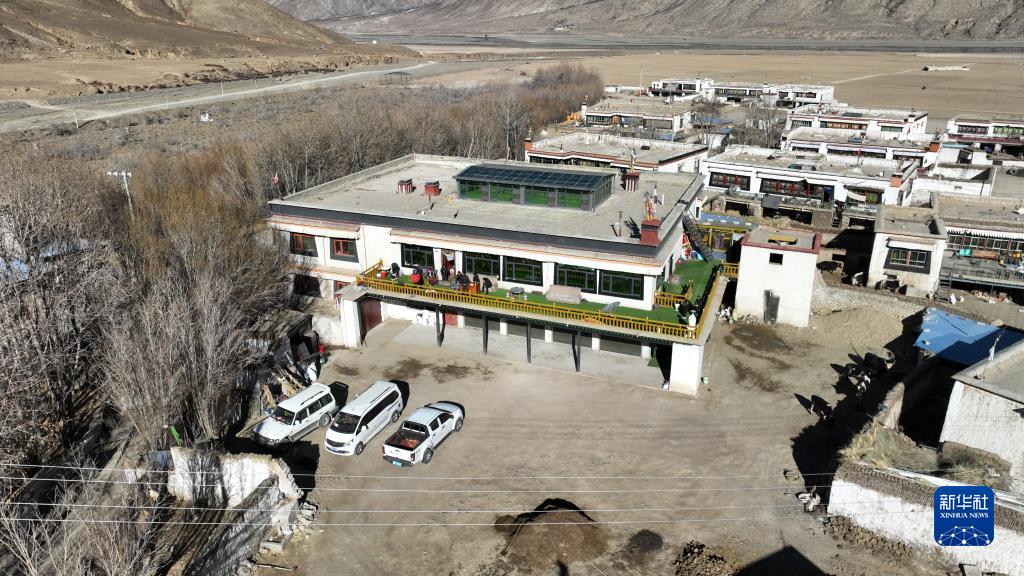 西藏日喀則市拉孜縣扎西宗鄉雜村次旦老人家的二層小樓(1月22日攝,無人機照片)。