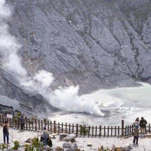 這是1月22日在印度尼西亞西爪哇省萬隆附近拍攝的覆舟火山(無人機照片)。