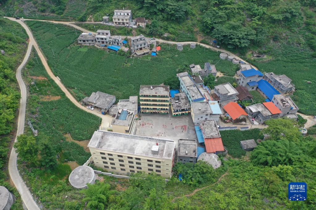 大化瑤族自治縣板升鄉弄勇小學新貌(2022年5月19日攝,無人機照片)。