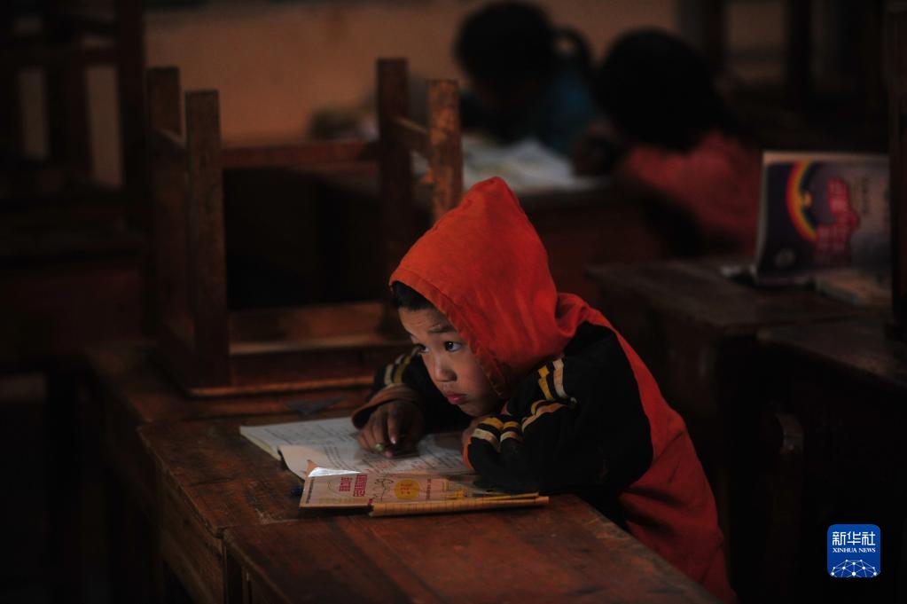 在弄勇小學讀二年級的蒙宣汰在教室里學習(2012年12月26日攝)。