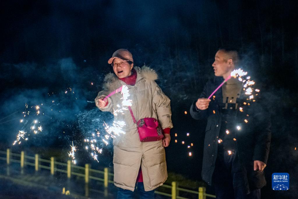 辭舊迎新之際,在允許燃放煙花爆竹的區域,人們點燃喜慶的煙花,迎接新春佳節。