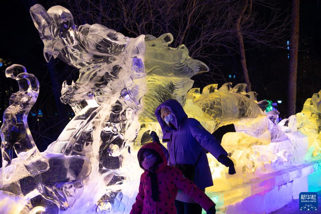 春節假期,許多游客與市民來到哈爾濱冰燈藝術游園會園區,觀賞冰雕,感悟冰雪藝術的魅力,暢享假期。
