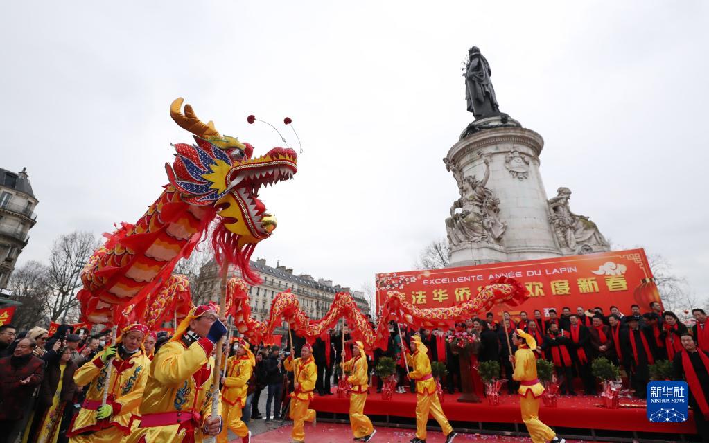 當日,法國巴黎舉行盛大兔年春節彩妝游行。該活動由當地多個華僑華人社團共同組織,慶祝農歷兔年春節的到來,吸引眾多市民前來參觀。