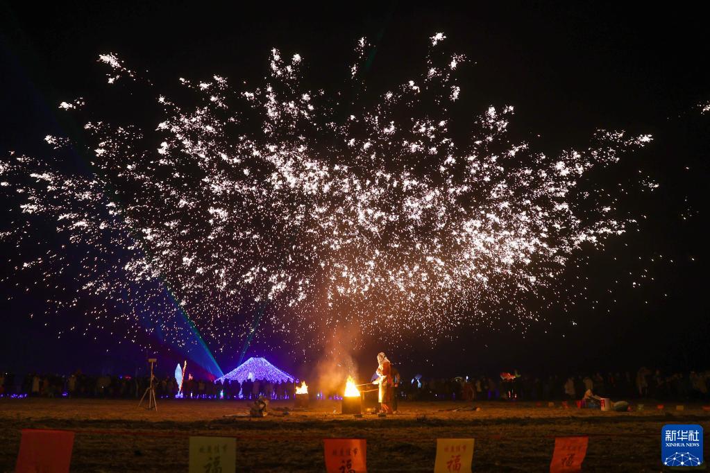 春節假期,絢爛的煙花和“打鐵花”表演、五彩繽紛的燈光秀點亮夜空,營造出歡樂、喜慶、祥和的節日氛圍。