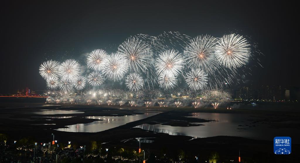 1月22日大年初一晚,2023年南昌市迎春煙花晚會在江西省南昌市贛江老官洲上演。絢爛繽紛的煙花在夜空中爭奇斗艷,為市民及游客送上新春祝福。