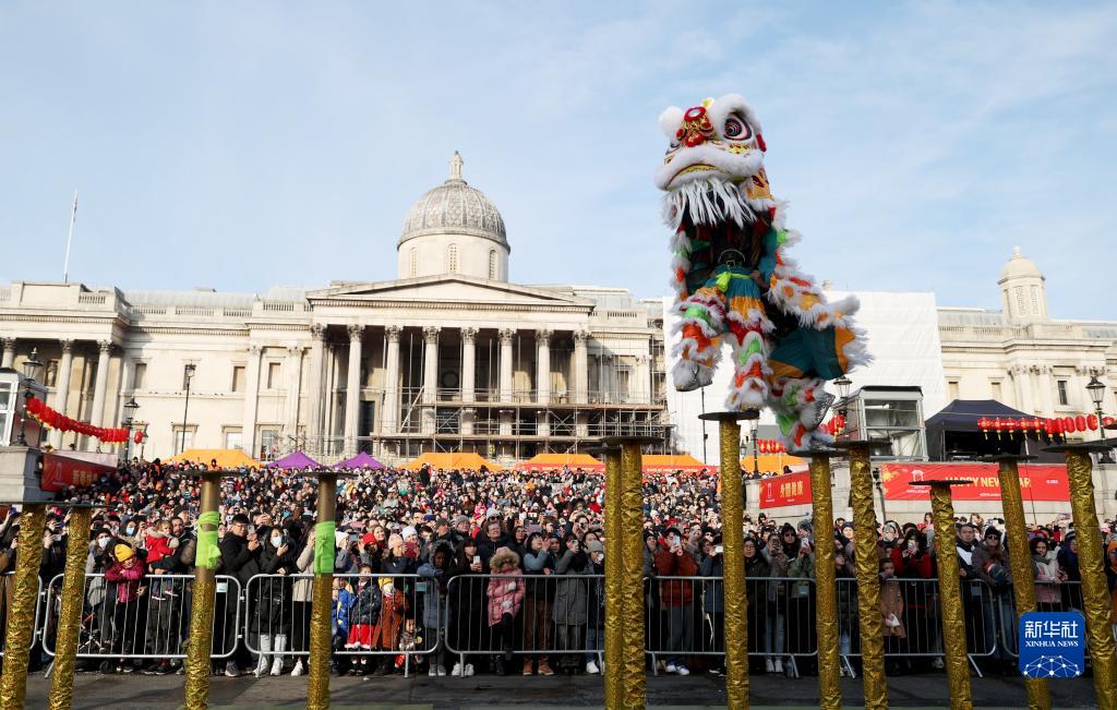 當日,英國倫敦特拉法加廣場舉行春節慶典,慶祝兔年新春佳節。