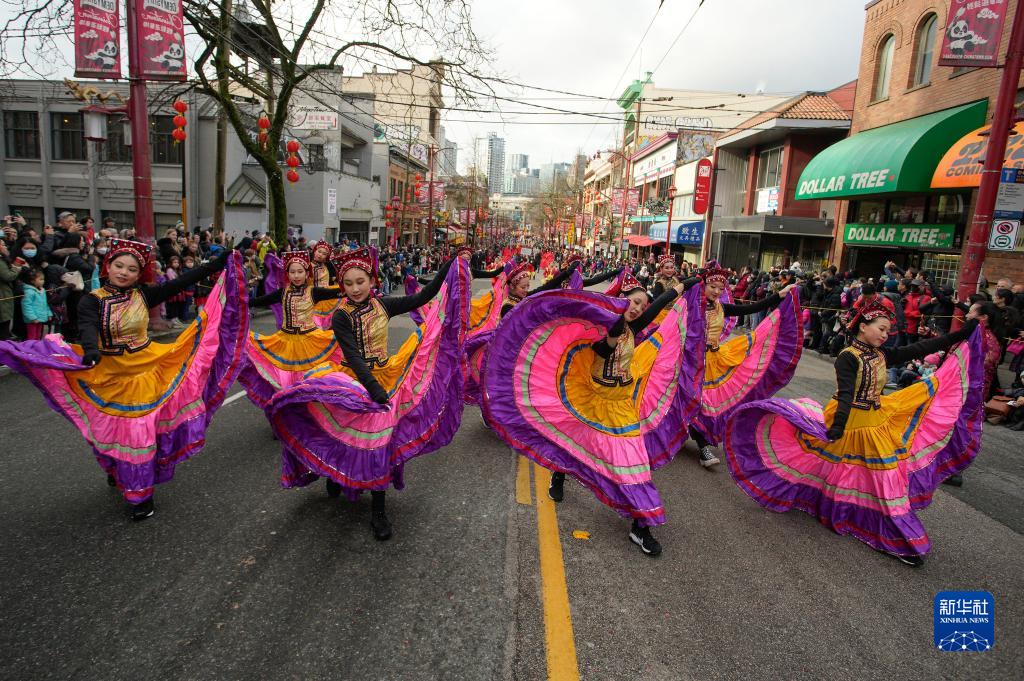 當日,加拿大溫哥華唐人街舉行第48屆春節大巡游,吸引數萬民眾到場觀看,共同慶祝兔年新春佳節。