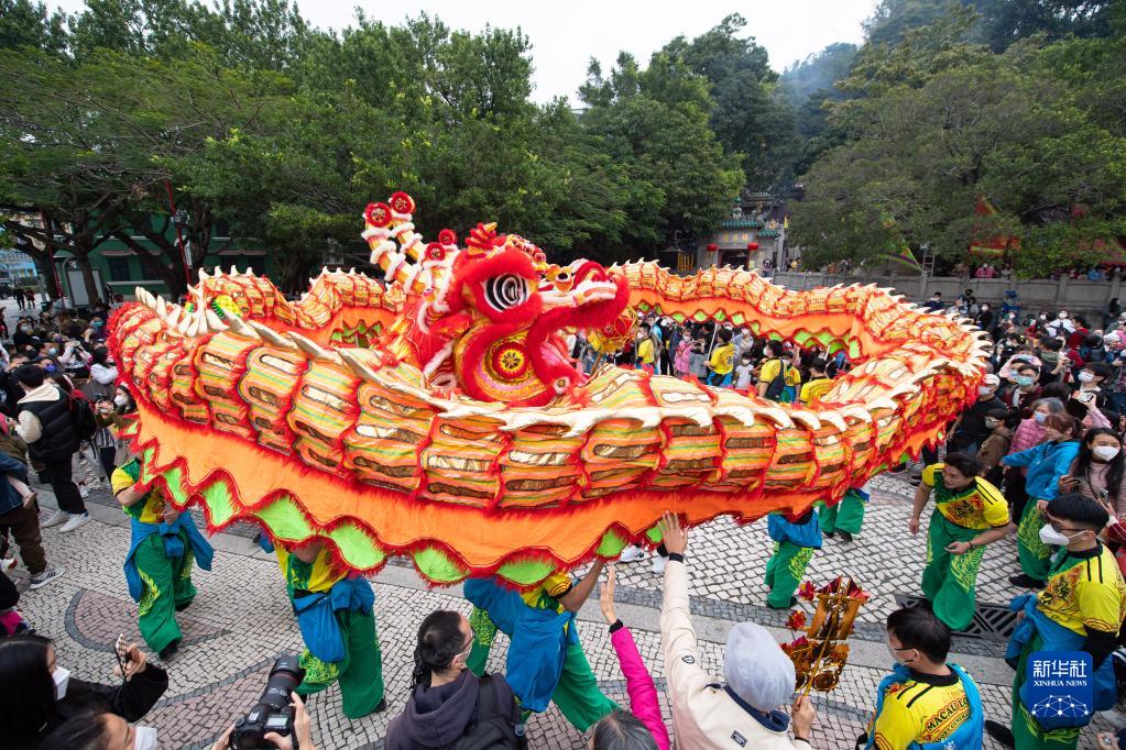 當日是大年初二,澳門旅游局在媽閣廟前安排了舞龍舞獅、變臉等賀歲活動,吸引大批市民及游客駐足觀賞。