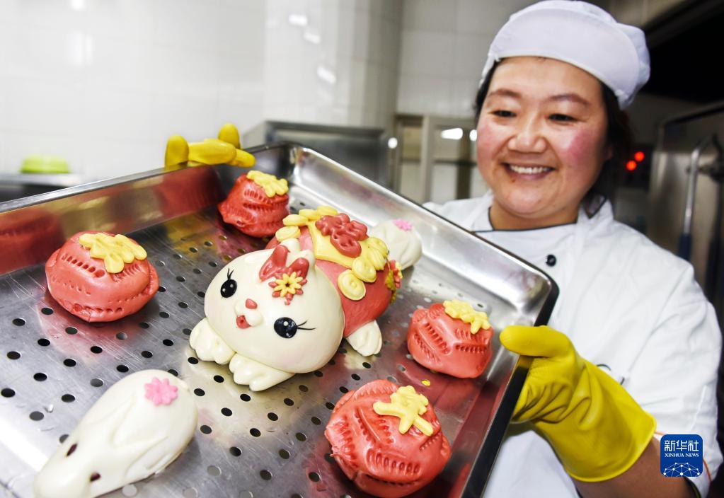 在青島極地海洋公園拍攝的喜兔造型花餑餑(1月18日攝)。