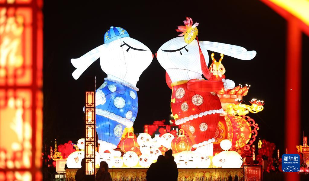 沈陽故宮門前廣場的兔年花燈(1月15日攝)。
