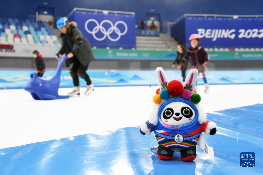 在國家速滑館拍攝的北京冬奧會吉祥物“冰墩墩”兔年特別版“兔墩墩”(1月22日攝)。